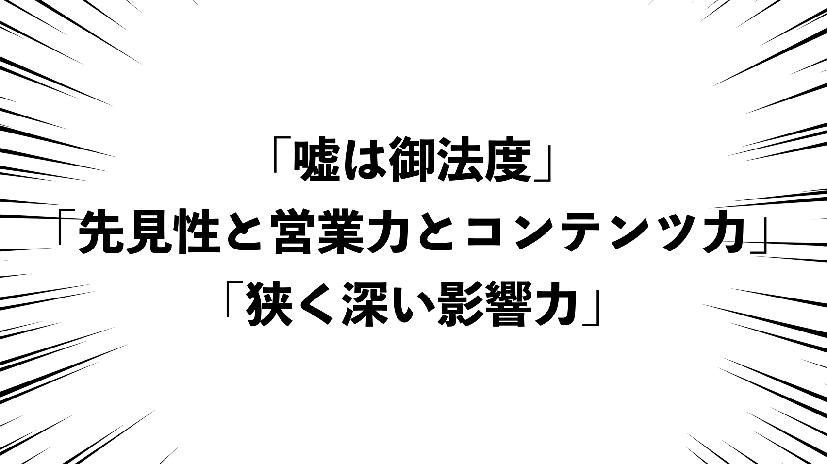 もちろん大手企業のメディアに対して、コンテンツ勝負でガチンコで勝ちに行く王道路線もあります。茨の道ではありますが(笑)