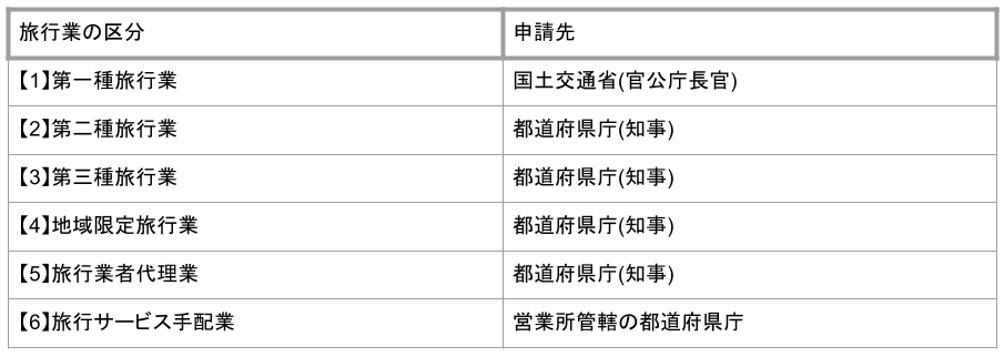 ちなみに、第一種旅行業は地方運輸局、そのほかの旅行業は都道府県の登録行政庁で手続きを行います。