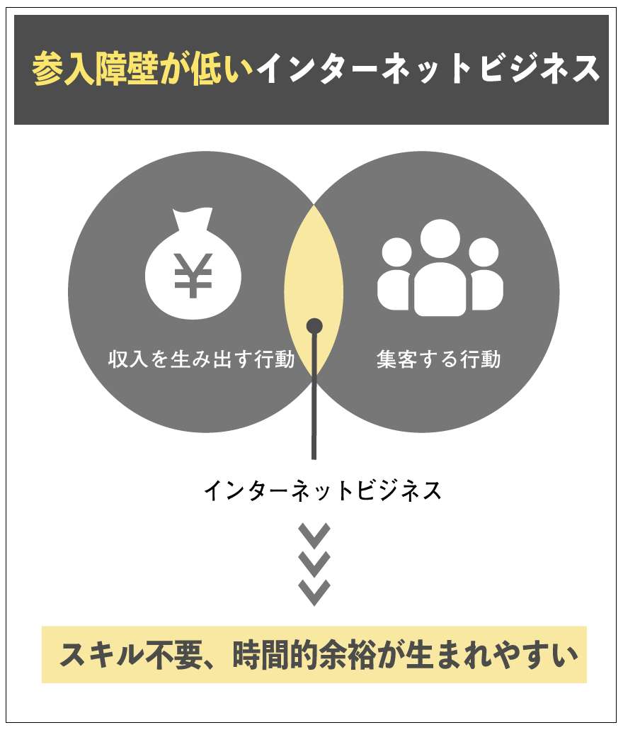 インターネットビジネスであれば無料でも始めることができる。集客がしやすく不労所得化もできる、非常に優れたビジネスなのだ。